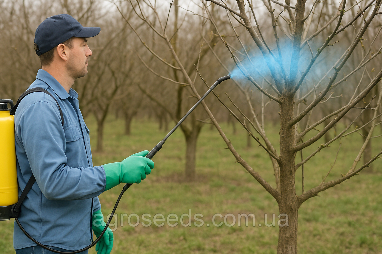 Рання весна (до розпускання бруньок) — найважливіша обробка 3% розчином. Температура повинна бути стабільно вище +5°C.